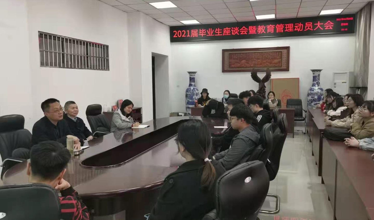 为进一步加强学生与学院的沟通联系,倾听毕业生心声,及时掌握毕业生的思想、学业、就业、生活等各方面的情况,针对性地解决毕业生在学习、生活中遇到的困难,开云官网于4月8日下午4点在综合实验楼206会议室召开2021届毕业生座谈会暨教育管理动员大会。学院党委书记黄学玉、副书记方明科、毕业班辅导员及毕业生代表40余名参加了会议。