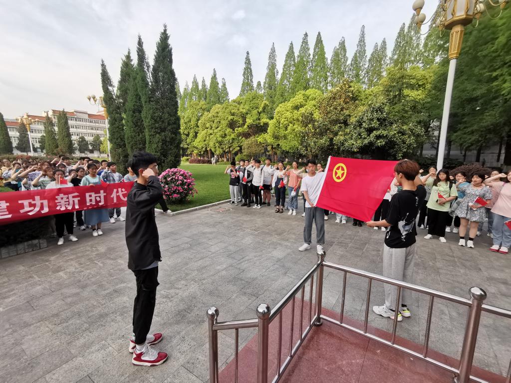 升旗仪式后,学院团委书记张晓博带领大家共同学习了习近平总书记在清华大学考察时的重要讲话精神,号召广大青年团员要认真学习总书记的重要讲话精神,扎实学习党史,坚定理想信念,树立远大理想,为实现中华民族伟大复兴的中国梦奉献青春力量。该院参加校青马培训工程学员骆文静同学、2020级土木工程班白晓宇同学分别以《追今抚昔,巍然前行》《百年初心精神,点亮青年未来》为题,激情讲述了中国共产党的百年光辉历程,抒发了对党和国家的真挚热爱,表达了坚定不移听党话、跟党走,用青春之火点亮未来之光的信念。在2020级史俊鹏同学的领誓下,全体共青团员重温了入团誓词。