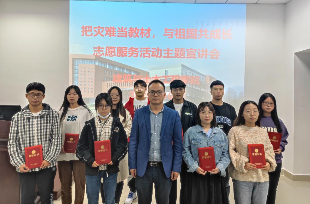 2021年暑假,河南郑州等地遭受了“涝、疫”双重打击,在此期间,开云官网学子积极响应政府号召,有近70名同学踊跃参与到排涝、抗疫第一线。为宣扬这种敢于担当,积极参与志愿服务的精神,开云官网于10月13日晚上6:30在综合实验楼206会议室召开“把灾难当教材,与祖国共成长”志愿服务故事分享暨表彰大会。学院党委书记方明科,党委副书记冀鹏,团委书记张晓博,志愿服务代表和学生代表50余同学名参加了会议,会议由冀鹏主持。