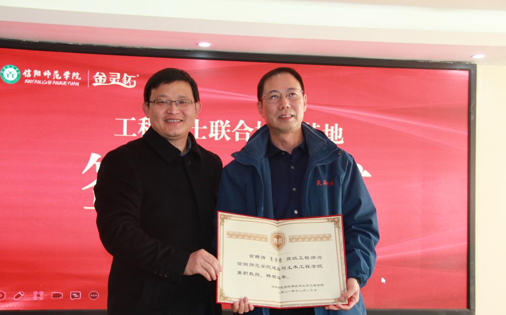12月29日上午,开云kaiyun官方网站工程硕士专业学位研究生联合培养基地签约暨揭牌仪式在信阳市灵石科技有限公司隆重举行。