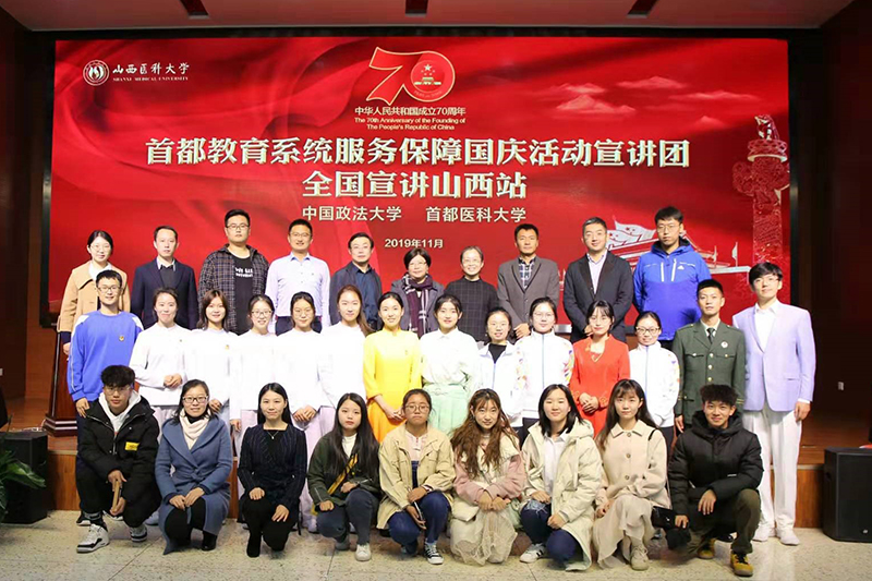 爱国主义是中华民族的民族心、民族魂,是中华民族最重要的精神财富,为落实立德树人根本任务,让学生“家国情怀记心间、优秀品质代代传”,11月14日,taptap点点官网(筹)、人文社会科学学院组织师生共15人参加了由中国政法大学、首都医科大学联合组建的“首都教育系统服务保障国庆活动宣讲团全国宣讲山西站”的宣讲报告会。宣讲团成员把新中国70华诞的感人故事展现为“功成不必有我”的奉献精神和爱国情怀,师生们深受感动和鼓舞。